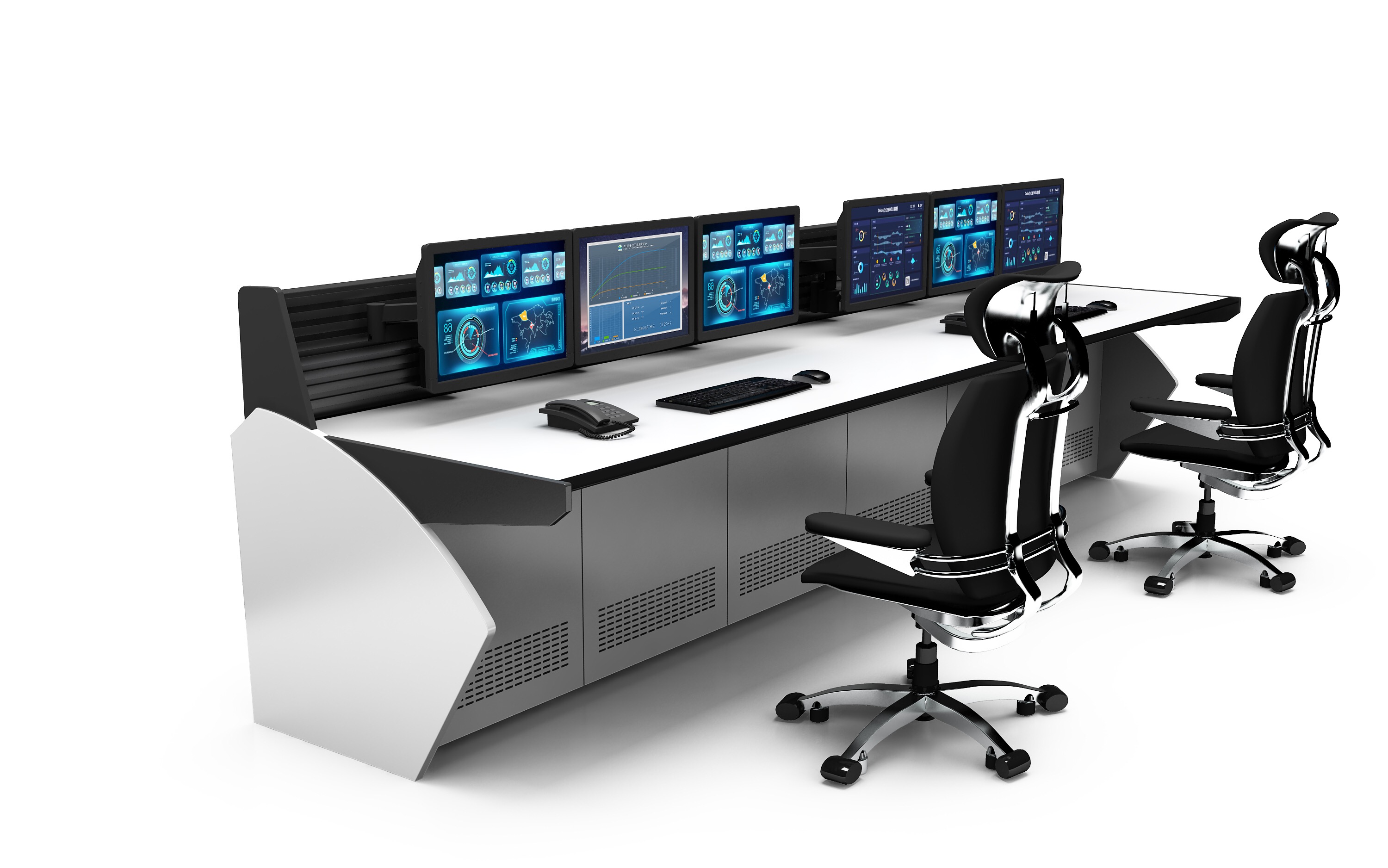 为电力调度系统专用的调度电话进行交换的语音前台设备。调度台是调度交换机的前台设备,主要进行电力调度语音通讯监控台 可以根据客户的使用需求而订制。它可以单联使用,也可以是多联组合使用。可以单层(每个显示器为一层,两个显示器叠垒为两层)使用,也可以多层使用;一般来说,监控操作台还是全钢结构的比较多这种钢结构的是冷轧钢板经过裁切,折弯,打磨等非常多的工序和流程完成的,这种材质制成的监控操作台,相对来说也是十分耐用的,而且这种材质的监控操作台还可以达到比较好的使用效果。性能、外观和实用性都很好。