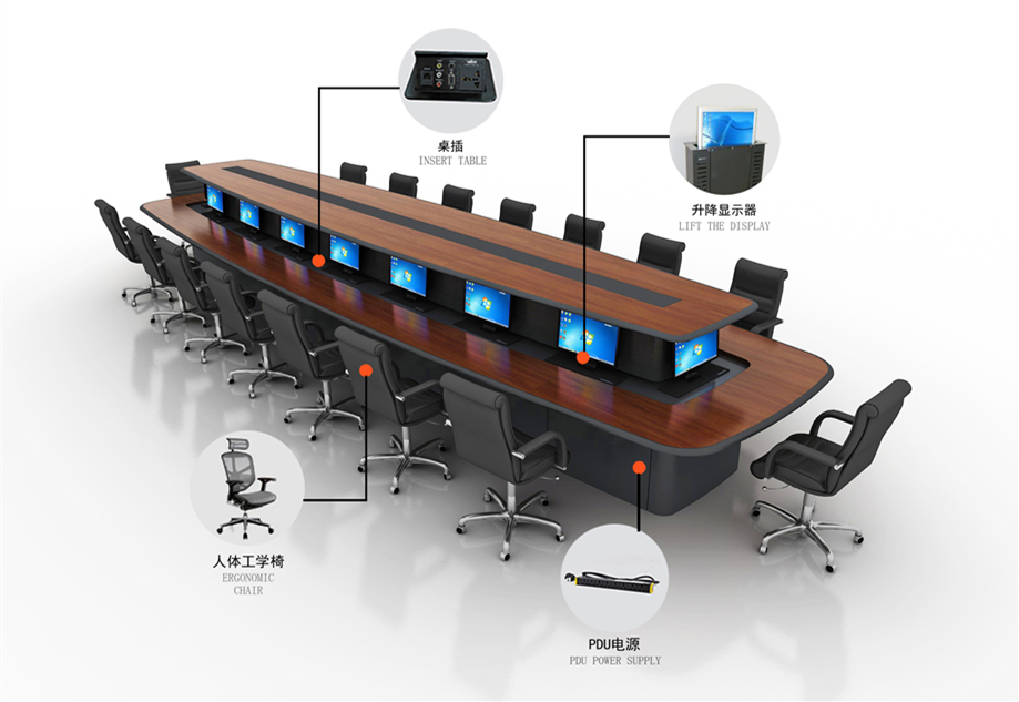 定制化操作平台是控制中心工作人员经常接触的设备,监控人员操作的对象,包括显示器、键盘、鼠标、电话、调度触摸屏、KVM控制器、主机、文件夹、电源、电缆、操作椅等,都需要合理的支撑和放置可提供附件的位置,以及支持上述设备的所有附件。