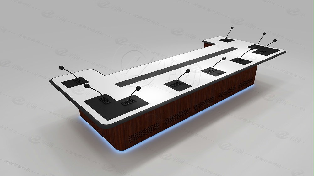 高端智能化定位式升降会议桌,感应式操作,广泛用于智慧中心、模拟作战中心、视频会议等。